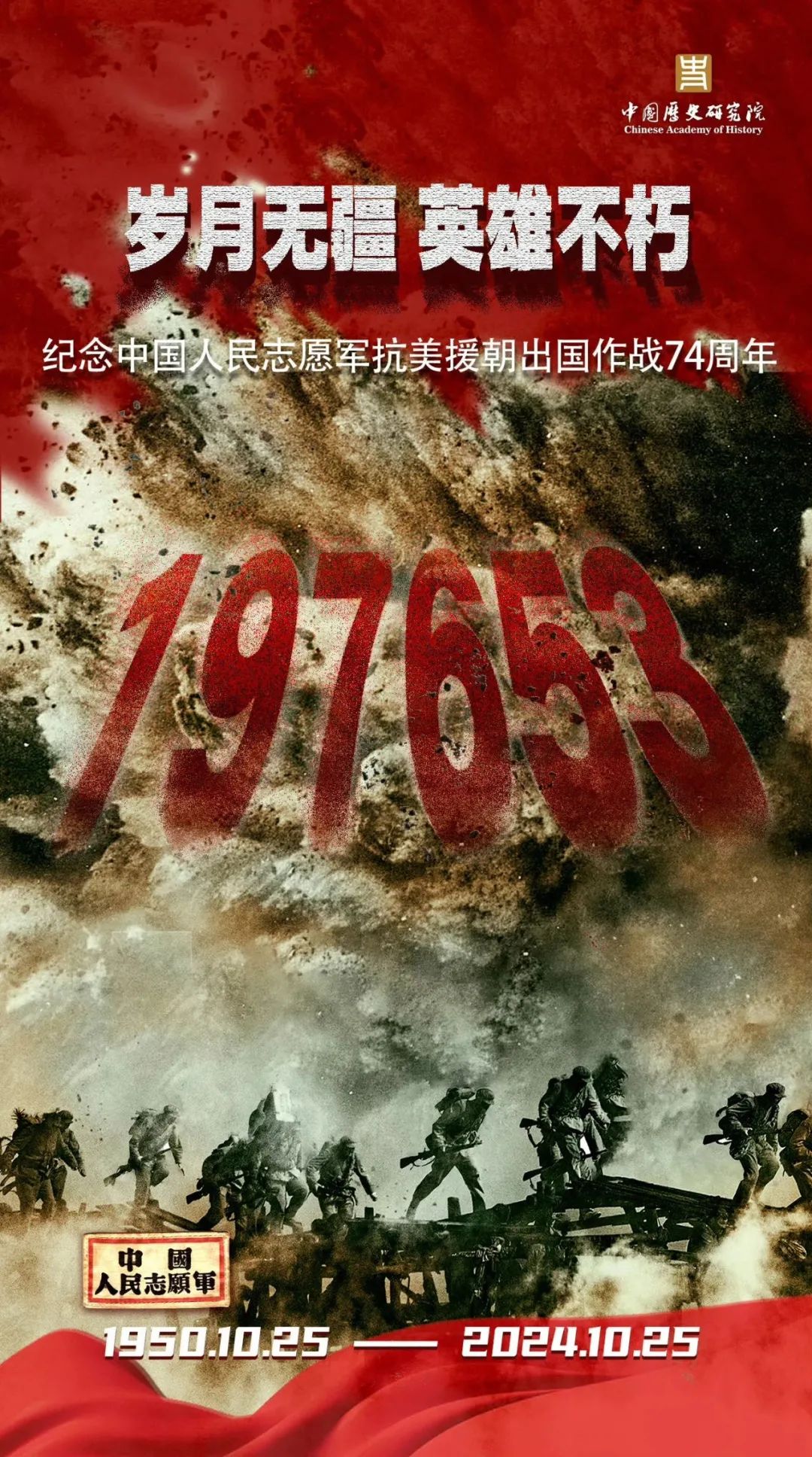2024年10月25日是抗美援朝战争第74周年纪念日。74年前的今天,中国人民志愿军跨过鸭绿江,奔赴朝鲜战场,与朝鲜人民军并肩作战,共同抵抗侵略者,一场震惊世界的正义之战,就此拉开帷幕。今天,让我们一同回顾那段波澜壮阔的历史,铭记英雄们的壮举。