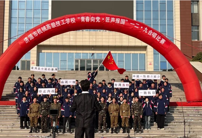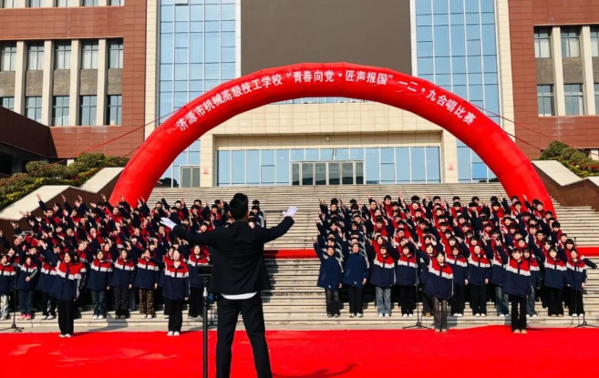 方阵亮点:整齐划一的《一二三四歌》,唱出了纪律与集体的力量。而一曲校本歌曲《爱技习武歌》,则是对技工学子身份最响亮的告白。歌声中将“精益求精”的工匠追求娓娓道来,极具校本特色与感召力。