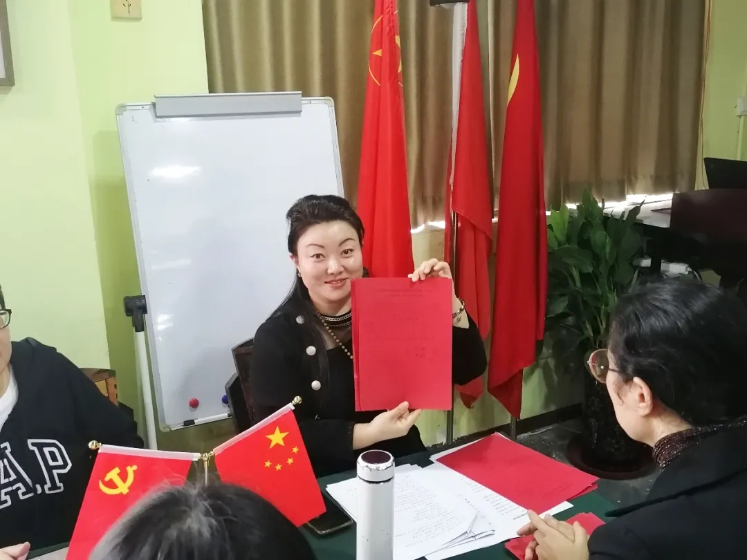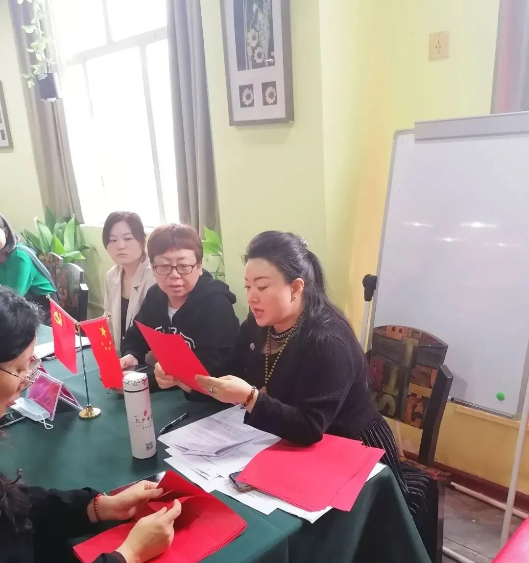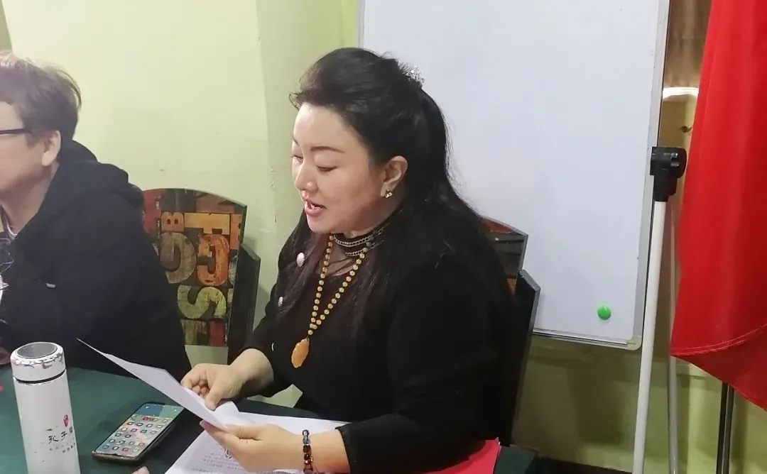 中原区林山寨街道妇联主席王林琰宣读林山寨党工委、妇联关于成立河南宏恩教育科技有限公司妇女联合会的批复。
